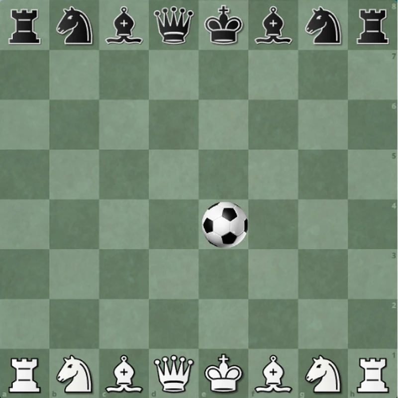 Règles de base de la variante Position initiale : Outre les positions initiale classique (sans les pions), un pion (ou un mini ballon de football !) représentant le ballon est placé en e4. Aucun autre pion n’est utilisé ; seules les pièces majeures et mineures participent.