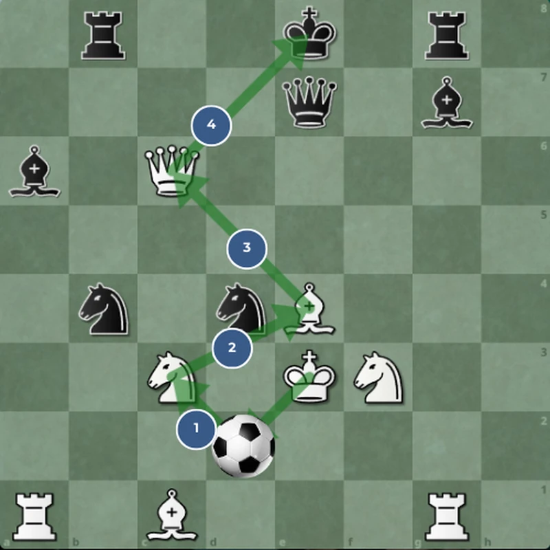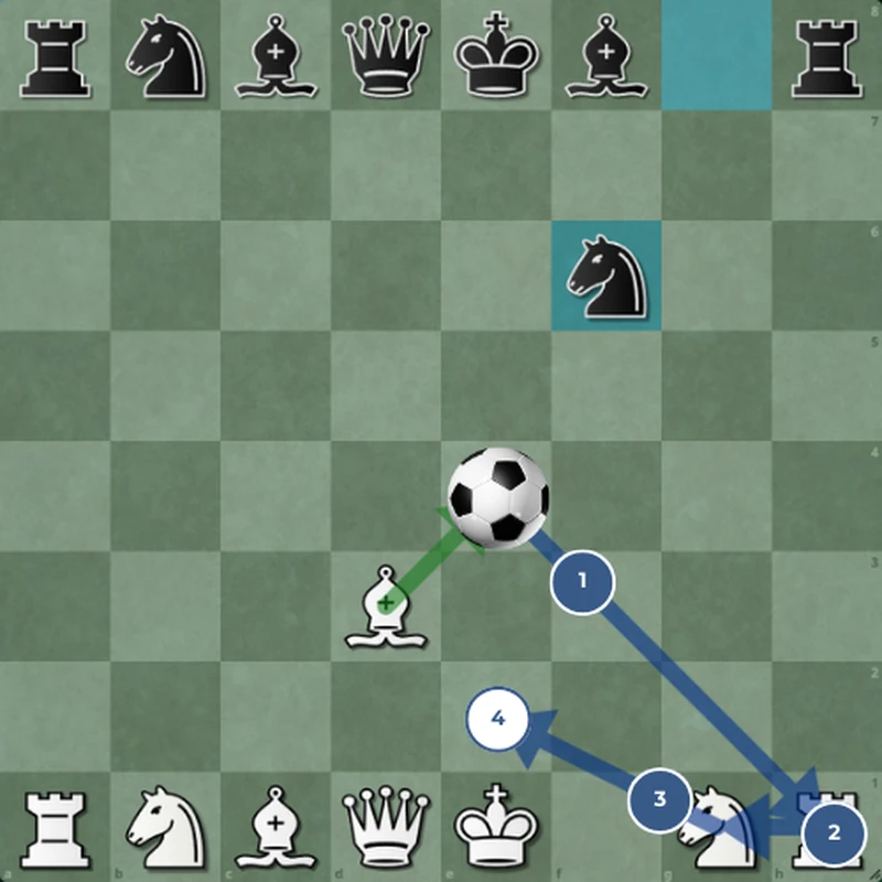 Par exemple, un fou peut passer à une tour en h1, qui passe à un cavalier en g1, lequel dégage ensuite la balle en e2. C’est alors au tour des Noirs.